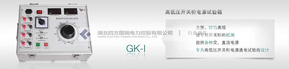 SFGK-I 高低压开关柜电源试验箱专为高低压开关柜电源通电试验而设计,可为开关柜的储能、电磁铁闭锁、合闸、分闸提供交流或直流电源,具有使用方便,轻巧美观等特点。