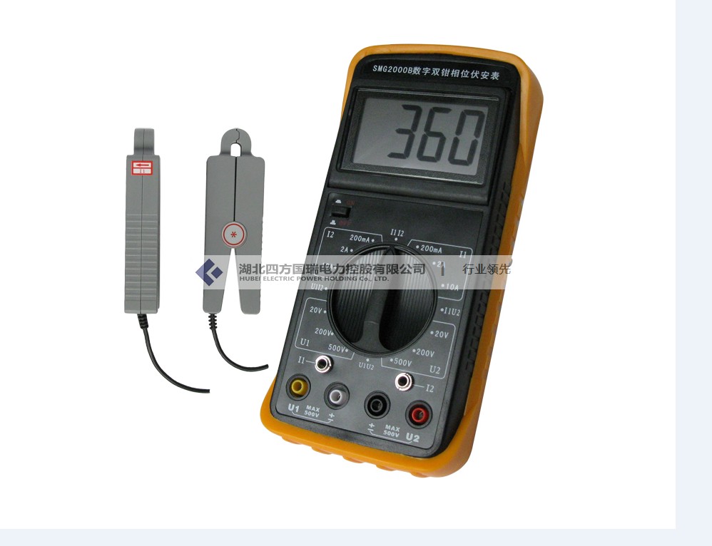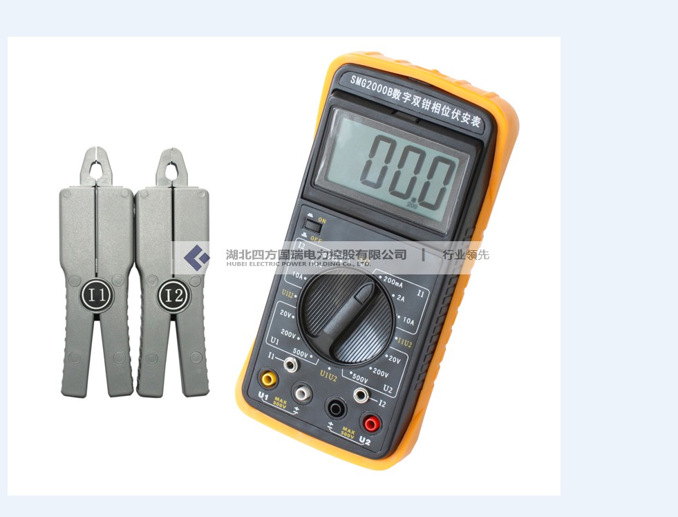 SMG2000B数字双钳相位伏安表是专为现场测量电压、电流及相位而设计的一种高精度、低价位、便携手持式、双通道输入测量仪器。用该表可以很方便地在现场测量U-U、I-I及U-I之间的相位,判别感性、容性电路及三相电压的相序,检测变压器的接线组别,测试二次回路和母差保护系统,读出差动保护各组CT之间的相位关系,检查电度表的接线正确与否等。