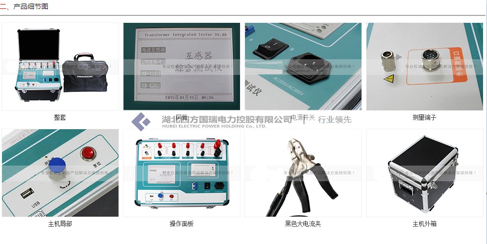 测量用电流互感器、继电保护装置试验仪、变压器直流电阻测试仪、断路器特性测试仪、避雷器特性测试仪等;