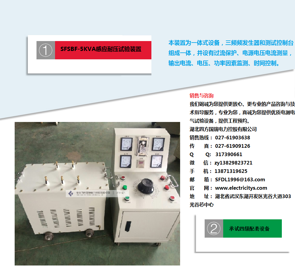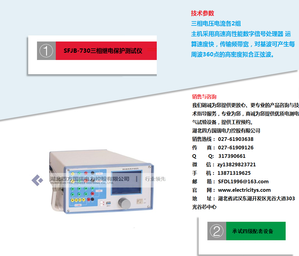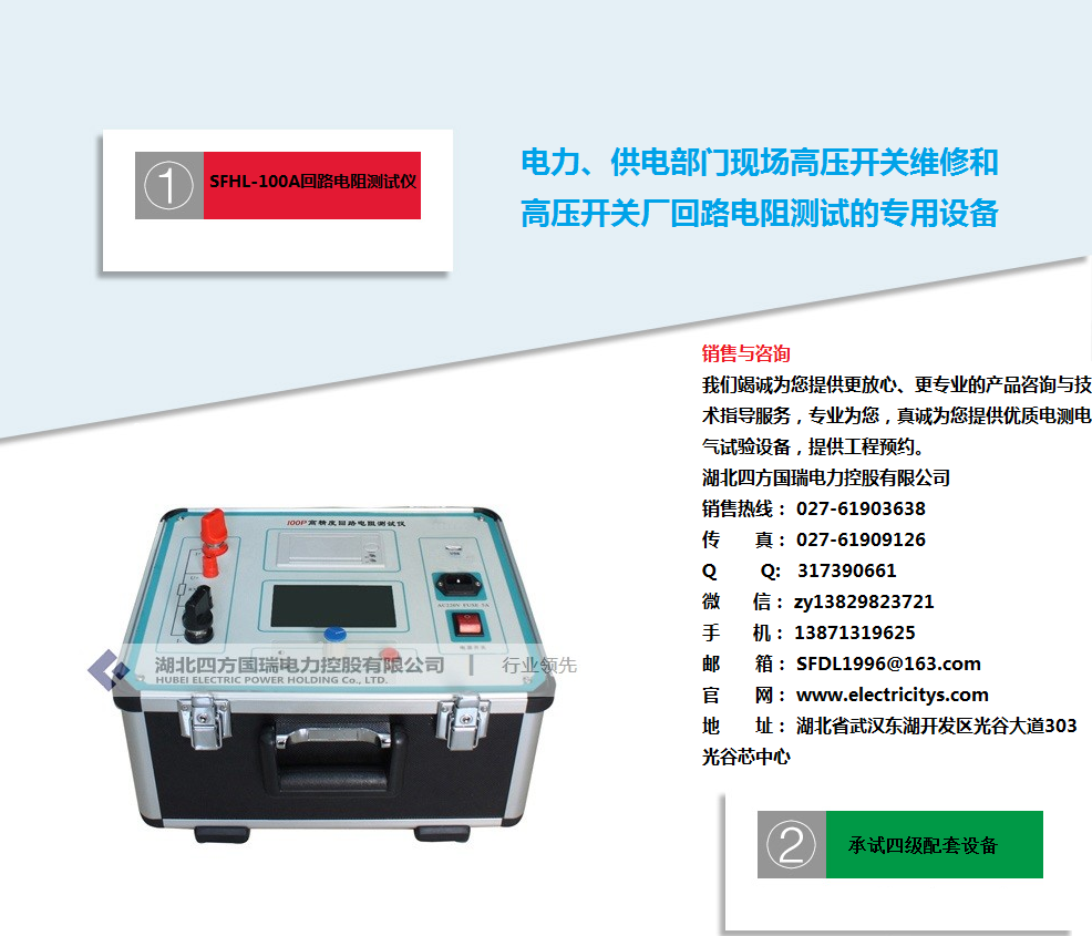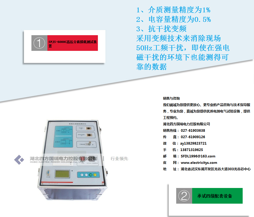 湖北四方国瑞电力控股有限公司始终秉承“专业打造精品电测产品,诚信赢得至高市场荣誉”的企业精神,努力不断地为国内外客户制造精品电测产品,为电力行业发展贡献自己的一份力量。我们将尽快安排电力工程师为您及时解答!湖北四方国瑞电力控股有限公司.位于国家级高新技术开发区四方国瑞电力工业园内,是一家专业从事电力电气检测(测量)设备、仪器仪表、电力自动化系统的研发、生产与销售的资深品牌科技企业。湖北四方国瑞电力是一家专业生产及销售:试验变压器、工频耐压装置、综合试验台、高压耐压设备、串联谐振承试设备选型、变压器测试仪器、继电保护测试仪、断路器测试、开关测试仪器、避雷器测试仪器、接地、绝缘电阻测试仪器、互感器检测及计量仪器、SF6、油化测试仪、蓄电池检测仪无功补偿电容检测。
