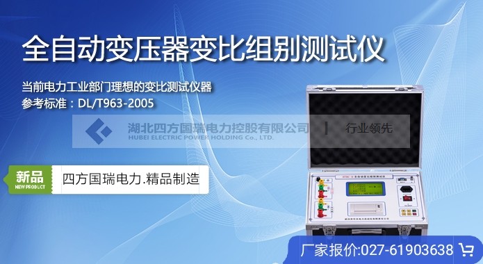 用变比电桥测量变压器的变比,操作过程繁琐,测量范围狭窄,已经不适应现代测量的快节奏、高效率的要求。为此,采用现代电子技术,湖北四方国瑞电力研制出了新一代变压器变比组别测试仪。它体积小,重量轻,精度高,稳定性好。它采用了大屏幕汉字显示、菜单操作,界面友好。变比组别可一次测完。该仪器是电力工业部门的理想测试仪器。
