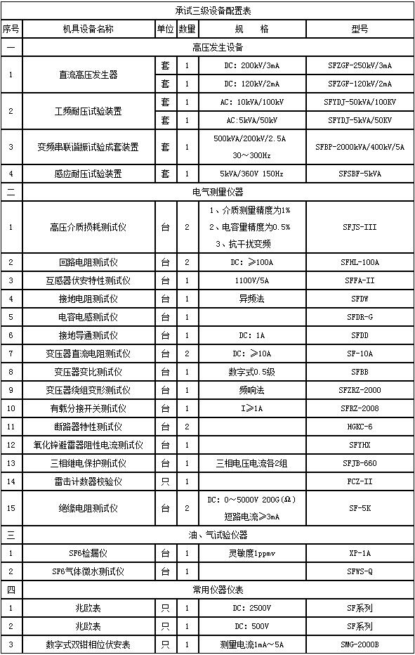 对于三级承修承装承试类试验设备,大多数朋友都不了解。今天我就给大家简单介绍一下三级承修、承装、承试类的试验设备配置表。