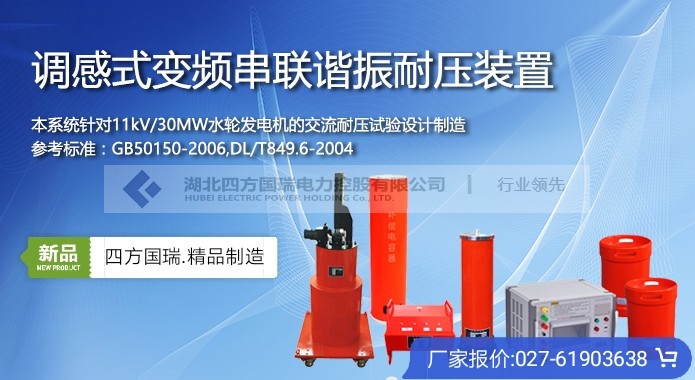 这样就解决了在一般的交流耐压试验中试验变压器容量不能满足试验要求的问题。而此时电容量与电感的关系为ωL=1/ωc,因为对某个试品而言,电容量是固有的,试验用可调电感的价格也非常昂贵,因此解决问题的途径就引到了改变电源频率回路的谐振频率,在初始电压下调节回路的频率,观察Uc的变化达大值时,增加或减小频率时谐振电压都要下降,这时的频率为谐振频率,这时的电压为谐振点电压,增加励磁电压就能升高谐振电压,从而达到试验电压目的。另外,由于试验回路是处于谐振状态,回路本身具有良好的滤波作用,电源波形中的谐波分量在设备两端大为减小,从而输出良好的正弦波形。当试品放电或击穿时,即回路中等值电容被短路,谐振条件被破坏。