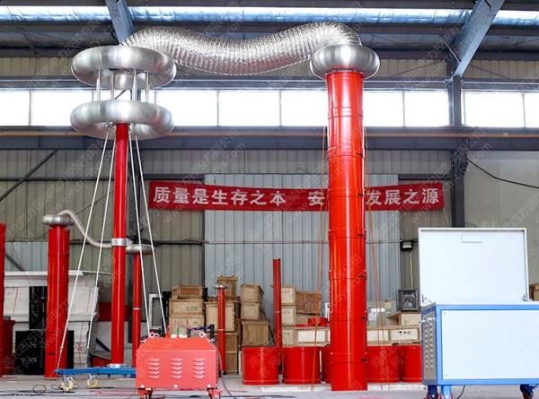对于【来说:从而相应减小励磁变原边的输入电流。试验电源容量S=P+P1,其中P1为电源本身的损耗,由电源端输入电压为380V可得电源电流I1=。试验中电抗器的额定电压和电流也应大于试验电压和高压电流,当电抗器采取串并联以满足试验要求时,必须计算每个电抗器上所承受的电压和电流不超限值。在现场试验中,通常采用16mm2以上的裸铜线接地,裸铜线其寄生电感在μH数量级,约0.1-1μH/m,直流电阻约0.1mΩ,如果接地线有弯曲环绕现象,电感量可增加到10-1000μH/m。试品绝缘通常在交流电压的正峰值或负峰值被击穿,试品被击穿瞬间试品上的电压高,击穿后试品上的电压跌落到零的时间一般在0.1-10μs之间,具体情况与击穿点的实际情况有关。